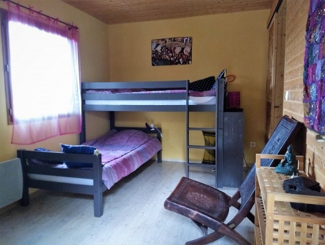 Das Holzhaus hat 2 oder 4 Schlafzimmer, ein Wohnzimmer von 35m, die Trocken-WC, 3 Terrassen, die Schatten oder die Sonne zu wählen und einen Plancha, um Ihre Mahlzeiten dete vorzubereiten.